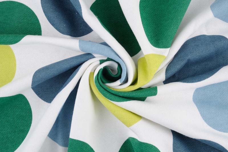 インパクト大!直径約9cmの大きなランダムドット柄の裏毛ニットです。