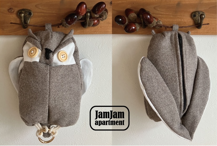 jam jam apartment☆フクロウポーチSサイズ(型紙/仕様書あり)
